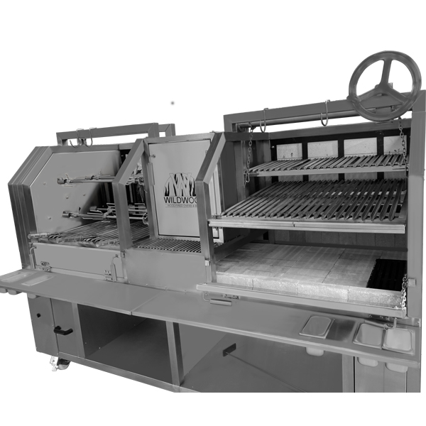 Wildwoods Argentine Grill 98 is a professional-grade wood-fired pit grill suitable for home or restaurant use.